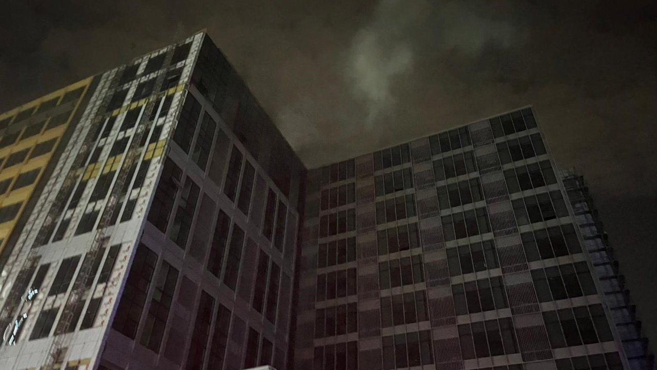 İnşaat halindeki 12 katlı binada yangın paniği